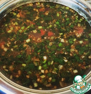 В конце добавить зелёный лук, петрушку и обязательно кинзу. Как сказала мне одна грузинская женщина: «Харчо без кинзы - это не харчо!». И я с ней абсолютна согласна.