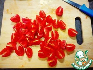 • Затем поем помидоры черри и нарезаем четвертинками.