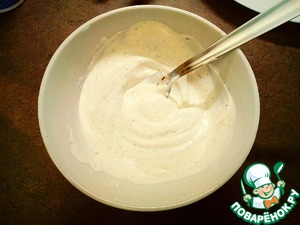 • Приготавливаем сметанный соус; в сметану замешиваем специи по вкусу (список примеров я оставила в списке ингредиентов).