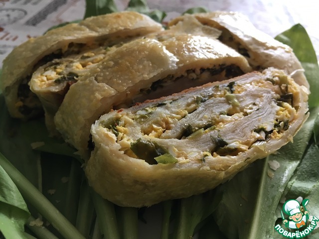 Рецепт «Рулет из слоеного теста с черемшой»: