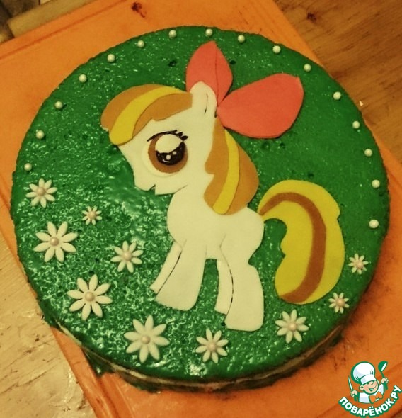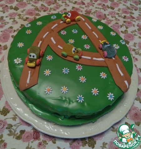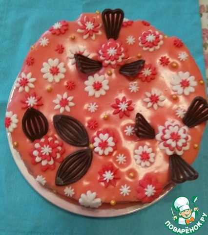 Дальше заливаете торт глазурью и убираете в холодильник минут на 30, чтобы глазурь схватилась. Потом достаете и украшаете, как хватит фантазии. На фото домашний торт на семилетие дочери