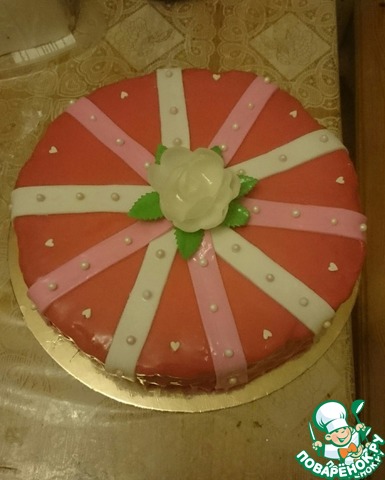 Ну и ещё пара иллюстраций. Это "Наполеон" (полоски из мастики, сверху вафельный цветок из местного "Ашана")