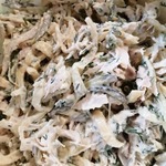 Отварное куриное филе разобрать на волокна.