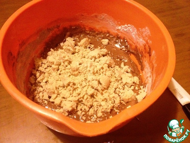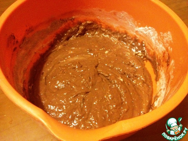 Ввести просеянную с разрыхлителем муку, какао. Перемешать.