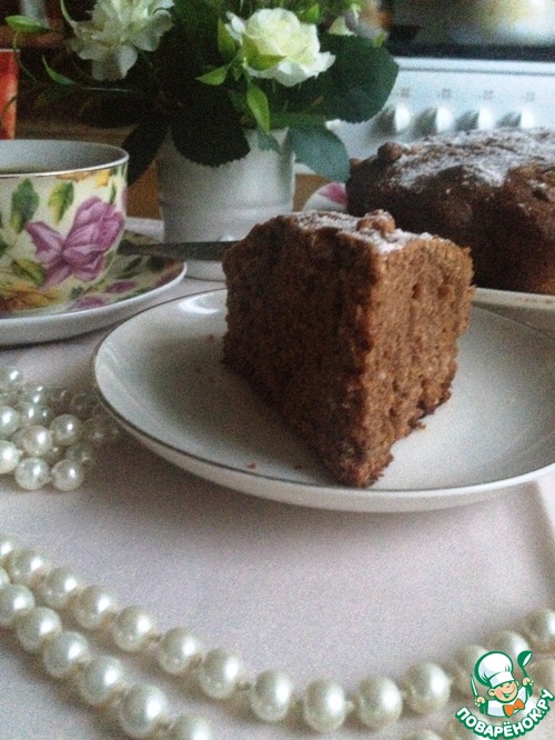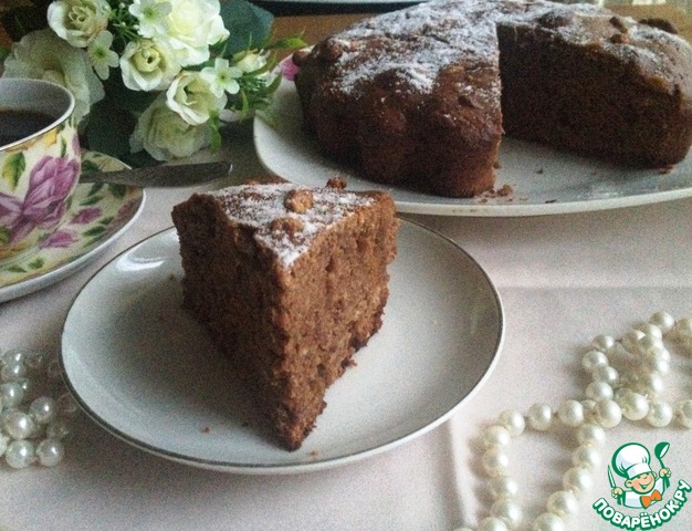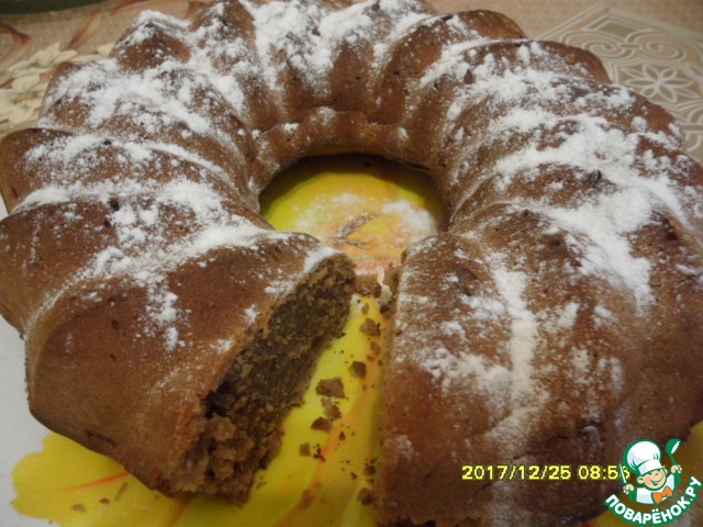 Готовый кекс остудить немного в форме, затем - на решётке. Охлаждённый кекс посыпать сахарной пудрой.