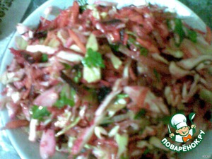 За это время нашинковала капусту, потерела морковь и свеклу, накрошила зелень.