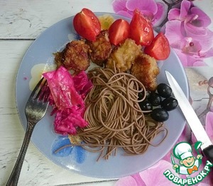 У меня сегодня были капуста от Рыжей лисы :), гречневые макароны, помидорчик и маслины.