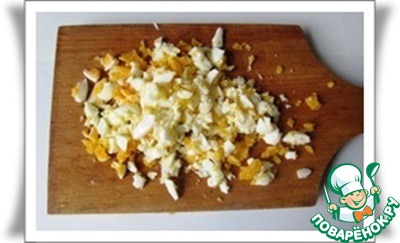 Яйца отвариваем и измельчаем, можно натереть на терке