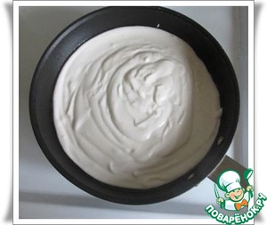 Сковороду (20 см в диаметре) с металлической ручкой или другую форму для выпечки слегка смазываем растительным маслом, выкладываем рисовое тесто