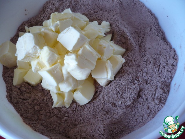 Сливочное масло нарежьте мелкими кубиками и добавьте в сухие ингредиенты.
