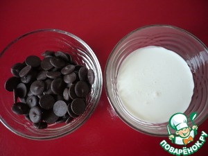 В качестве завершения добавьте немного ганаша на тёмном шоколаде. Для приготовления ганаша: жирные сливки доводим до кипения в сотейнике. Выливаем на тёмный шоколад и размешиваем венчиком до однородности.