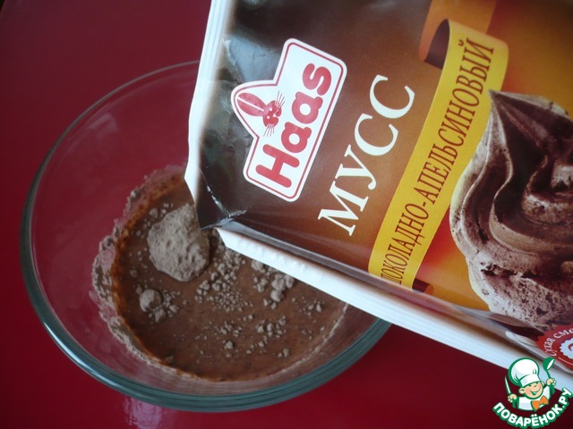 Теперь приготовим шоколадно - апельсиновый мусс. Я использовала сухой мусс ТМ HAAS. Мусс шоколадно-апельсиновый – нежный воздушный десерт, легкий и быстрый в приготовлении. Оригинальное сочетание вкусов.