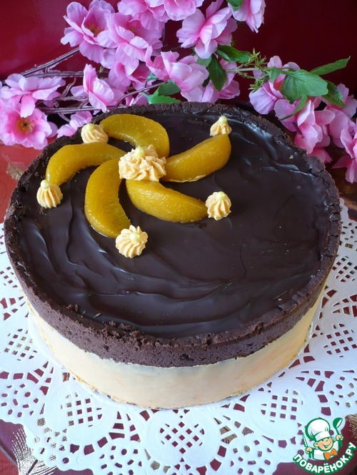 Предлагаю приготовить тарт с шоколадно - апельсиновым муссом и персиковой начинкой. Тарт имеет простейшую основу из шоколадного песочного теста. Внутри шоколадно - апельсиновый мусс от ТМ HASS. Затем идет слой персикового пюре, которое идеально смягчает шоколадный вкус, а кроме того даёт невероятно яркий цвет на разрезе, чего порой не хватает в весенних десертах. Сверху слой шоколадного ганаша и шоколада.