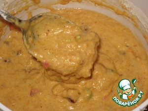 Сухую смесь добавить в яично-медовую массу, перемешать.