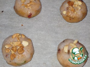 Руки немного смочить в холодной воде и слепить пряники, смазать взбитым белком, украсить миндалем, и выпекать около 20 минут при температуре 150 градусов.