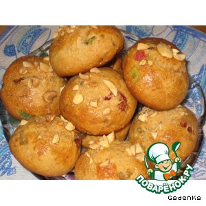 Вяленую черешню и цукаты порезать, если крупные, смешать с молотым миндалем и мукой. Можно просто взять одних цукатов или любых других сухофруктов (чернослив, курага, финики).