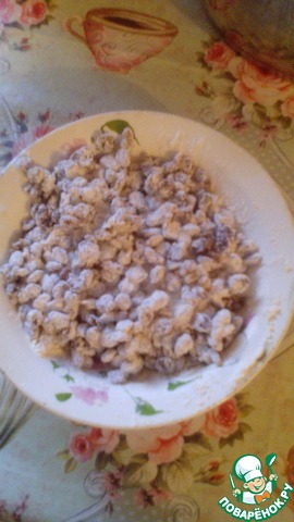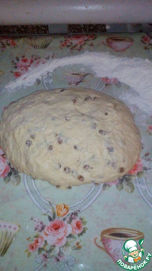 Как тесто поднялось добавляем чистый изюм перемешанный с мукой.