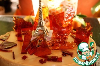 • Пока корж остывает, замачиваем желатин 1/2 стакана холодной воды. Масло сливочное комнатной температуры взбиваем вместе со сгущенкой и отставляем в сторону. Нельзя ставить в холодильник полученную смесь.