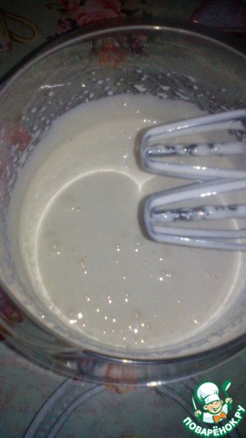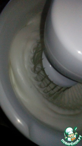• Предварительно включаем духовку на 200 градусов и прогреваем ее. Желтки и сахар взбиваем до бела.