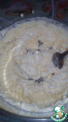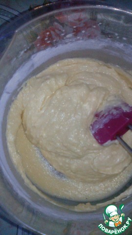 • Добавляем сливочное масло комнатной температуры (но не растопленное) взбиваем. перемешиваем муку и разрыхлитель и вводим в тесто лопаткой. По желанию можно в тесто добавить ванилин.