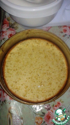 • Корж выпекается 20-30 минут в духовке, при 200 градусах, проверить зубочисткой. достаем и оставляем остывать.