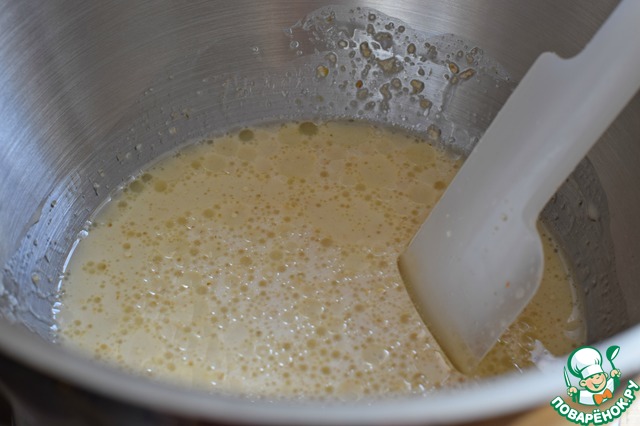 Дрожжи добавить вместе с мукой. Так как мука бывает разная, не стоит сразу добавлять все ее количество. Может понадобиться чуть меньше или чуть больше муки. -