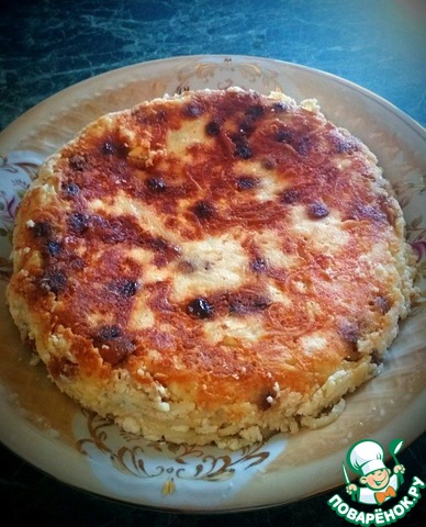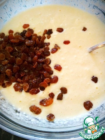 Далее вводим наш изюм к творожно-яичной массе. Еще раз аккуратно перемешиваем.