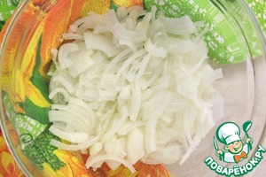 Луковицу нарезаем тонкими кольцами или четвертинками.