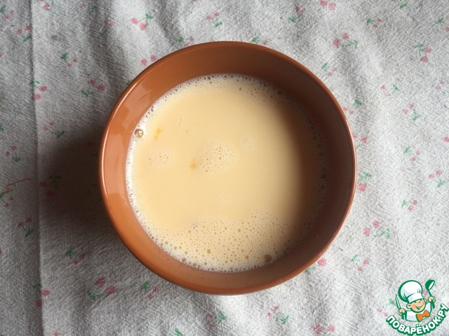 Яйца взбить с молоком, немного присолить - хватит небольшой щепотки, чтобы соль не мешала вкусу основных ингредиентов.