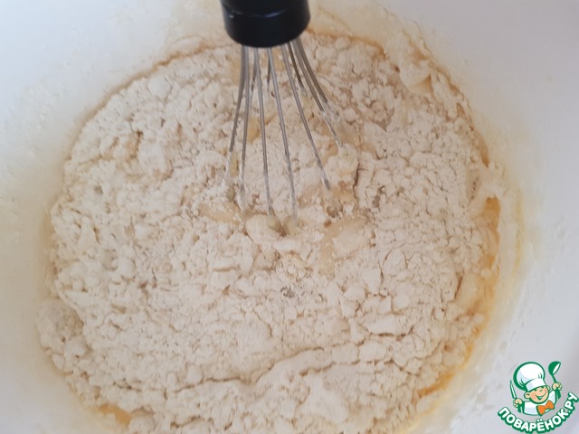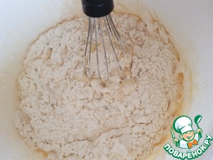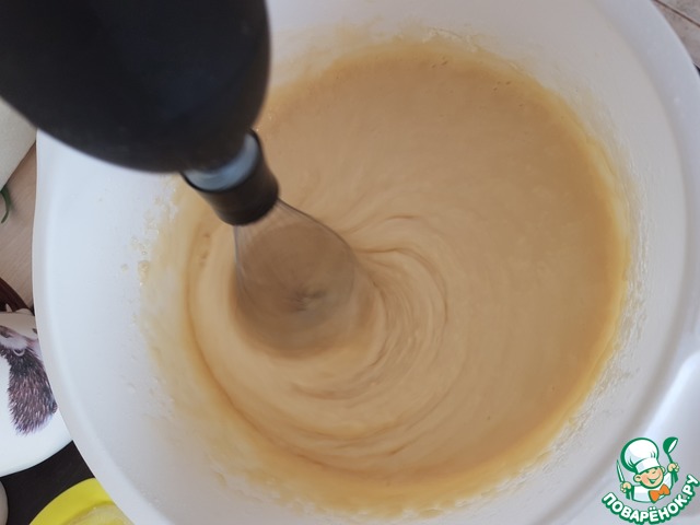 4. В конце добавить просеянную муку и взбиваем наше тесто п добавляем пакетик ванилина и опять же взбиваем до консистенции густой сметаны.