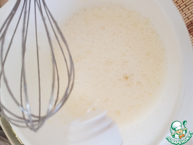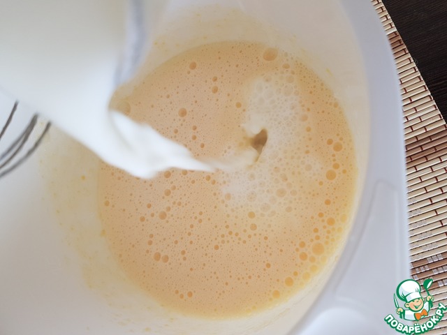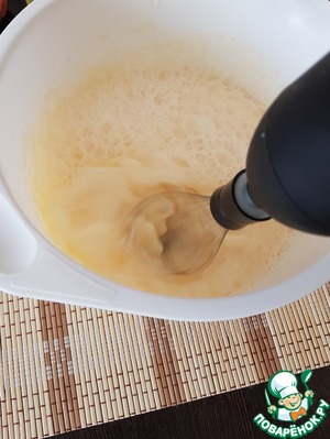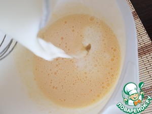 1. Миксером взбиваем 2 яйца, затем добавляем сахар и взбиваем с сахаром.