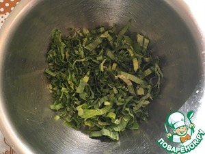 В это время, готовим начинку для пирога. Черемшу моем и лишнюю влагу сушим бумажными полотенцами.