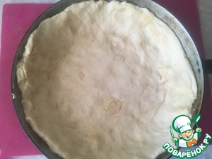 Форму смазываем маслом, раскатываем тесто и ставим в форму, делая бортики на 2-3 см.