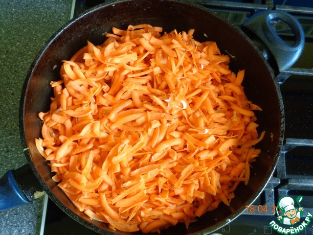 Морковь крупно шинкуем и слегка поджариваем.