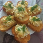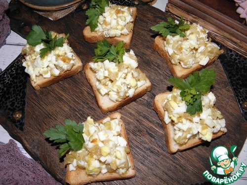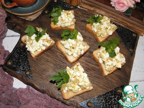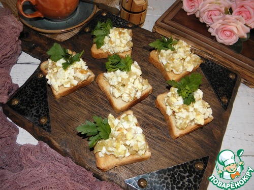 (у меня приблизительно получается на 6-7 тостов маленького размера - начинка из 3 яиц и 2 небольших головок лука).