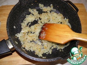 Мелко нарезаем лук, обжариваем его на растительном масле до готовности (золотистый цвет)
