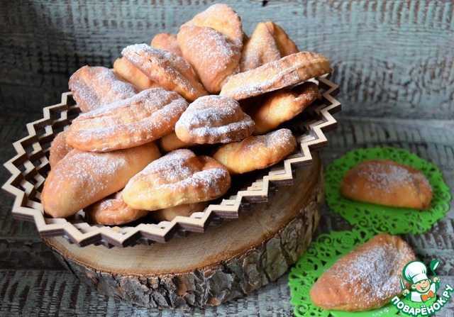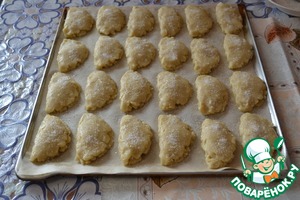 Сложить кружок пополам, слегка прижать, чтобы получилась форма сочника (отсюда и название печенья). Если место сгиба слегка полопается, то аккуратно защипните его.