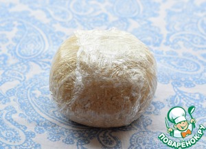 Завернуть тесто в пищевую пленку и убрать в холодильник на 20 минут. -