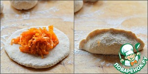 Каждую раскатать в лепешку толщиной примерно 0,5-0,7 см.