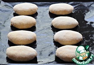 Пирожки выложить на противень, застеленный пекарской бумагой (смазать маслом) или тефлоновым листом, на расстоянии друг от друга. Пусть отдохнут пять минут.