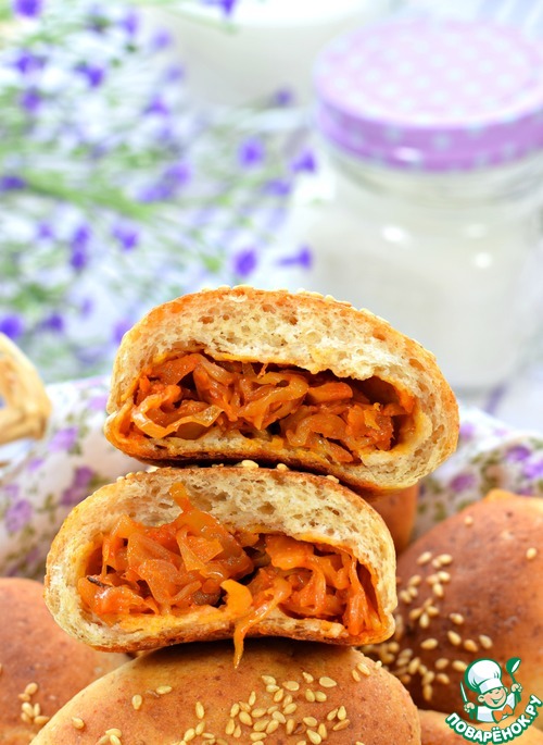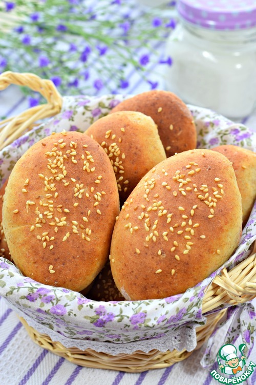 Смазать пирожки молоком, присыпать кунжутом. (по желанию)