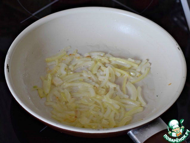В хорошо разогретом масле на активном огне обжарить лук до мягкости.