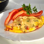 Блюдо из разряда "на скорую руку". Готовится моментально и также быстро исчезает со стола. Яичница с рыбой, томатами и сыром. Вкусна и с пылу с жару, и не менее хороша в остывшем виде. Заходите, угощайтесь.