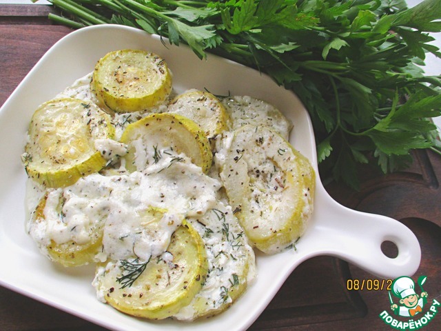 Этим рецептом со мной поделилась коллега по работе из Сербии. Очень вкусные кабачки в нежном соусе. Хорошо сочетаются с картофелем и грильным мясом.