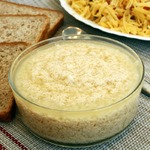 Осталось лишь переложить соус в миску, зыкрыть пленкой и убрать в холодильник перед подачей. При охлаждении тарама может немного загустеть. Подавать на хлебе.