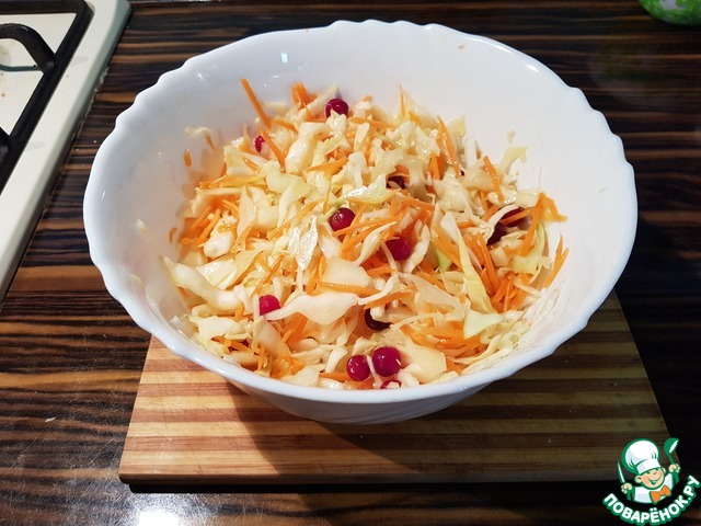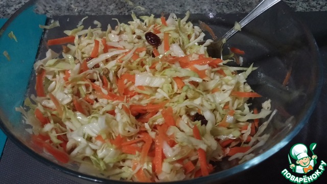 Добавить натёртую морковь, сушёную клюкву. семечки. На этом этапе можно играться. Я люблю добавить вместо уксуса сок лимона, иногда я добавляю апельсиновый сок, в пропорциях, конечно, иногда можно добавить промытый изюм и нет предела для импровизации.