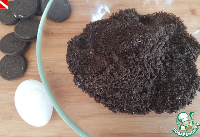 Для приготовления основы этого чизкейка необходимо измельчить печенье в блендере или другим удобным способом.