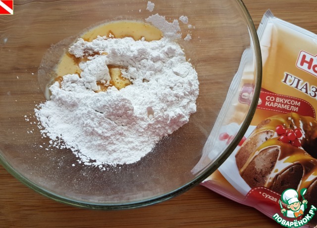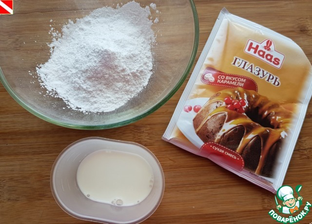 Содержимое пакетика глазури со вкусом карамели высыпать в удобную емкость