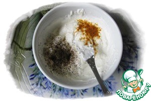 Перемешиваем. Советую заправку не солить, а досаливать уже готовый салат по вкусу. -