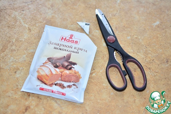 Пока готовится корж, приготовить крем из сухого содержимого Haas.